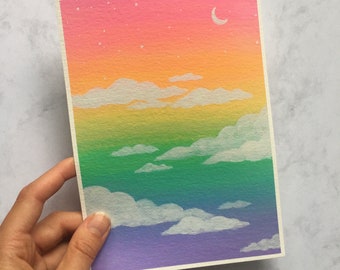Rainbow Clouds Art Print 5x7 Original Acrylic Etsy Ireland